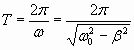 Вследствие периодичности косинуса различные состояния колебательной системы повторяются через определенный промежуток времени (период колебаний) Т, за который фаза колебания получает приращение 2π. Рассчитать период можно с помощью равенства: