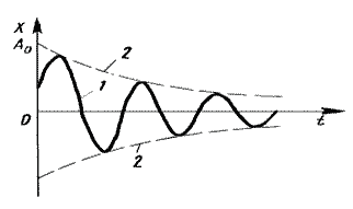 График этой функции показан на рис.1.7.5 сплошной кривой 1, а штриховой линией 2 изображено изменение амплитуды:
