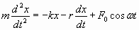 где F0 – амплитуда; ω – круговая частота колебаний вынуждающей силы. Составим дифференциальное уравнение (второй закон Ньютона):