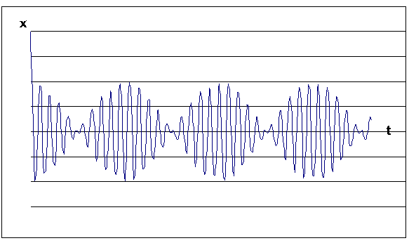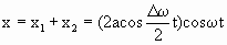 Колебания (1.7.41) можно рассматривать как гармоническое колебание частотой ω, амплитуда которого изменяется по закону