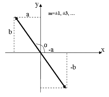 где знак плюс соответствует нулю и четным значениям m (рис 1.7.8.а), а знак минус – нечетным значениям m (рис.1.7.8.б). Результирующее колебание является гармоническим с частотой ω, амплитудой