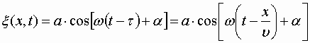 Найдем вид колебания точек в плоскости, соответствующей произвольному значению x. Для того, чтобы пройти путь от плоскости x=0 до этой плоскости, волне требуется время