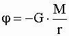 2. Потенциал гравитационного поля материальной точки массой (M) - прямо пропорционален массе материальной точки, создающей поле и убывает обратно пропорционально расстоянию от источника поля: