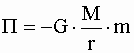 Потенциальная энергия тела массой (m), находящегося на расстоянии r от источника гравитационного поля - тела массой (M):