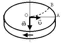 Пусть шарик массой m движется с постоянной скорость ν вдоль радиуса равномерно вращающегося диска (рис.1.8.3). Если диск не вращается, то шарик движется вдоль радиуса и попадает в точку А, если же диск привести во вращение в направлении указанном стрелкой, то шарик катится по кривой ОВ, причем его скорость ν относительно диска изменяет свое направление. Это возможно, если на шарик действует сила перпендикулярная скорости ν - это и есть сила Кориолиса.