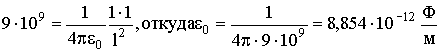 Коэффициент пропорциональности k зависит от выбора системы единиц. Так, для системы СГСЭ принято, что k = 1. В этой системе, после тщательных измерений, было установлено, что элементарный заряд равен величине Единицей заряда в системе СИ является 1 Кл. Было установлено, что: Вычислим силу, с которой взаимодействовали бы между собой два точечных заряда в 1 Кл, находящиеся в вакууме на расстоянии в 1 м: