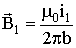 Направление силы определяют в соответствии с векторным произведением либо используя правило левой руки: если расположить левую руку так, чтобы вектор магнитной индукции входил бы в ладонь, а четыре сложенных пальца были направлены вдоль тока, то отогнутый большой палец покажет направление действия силы. Применим закон Ампера для вычисления силы взаимодействия между двумя находящимися в вакууме бесконечными прямолинейными проводниками. Если расстояние между токами равно b (Рис. 3.7.2), то каждый элемент тока i2 будет находиться в магнитном поле с индукцией