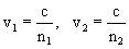 поскольку фазовые скорости волн в средах равны, соответственно:
