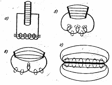 Экспериментальное подтверждение теории Максвелла было сделано Г.Герцем в 1888г. Для получения волн Герц использовал изобретенный им вибратор. В колебательном контуре электрическое поле сосредоточено между обкладками конденсатора, а магнитное – внутри катушки. В окружающее пространство эти поля попасть не могут. Чтобы появилось излучение, нужно модифицировать колебательный контур, сделать его открытым. Этого можно достигнуть, увеличивая расстояние между пластинами конденсатора и между витками катушки (Рис.3.9.8). В пределе можно прийти к вибратору Герца – устройству, которое будет излучать электромагнитные волны, если через вибратор пропускать переменный электрический ток.