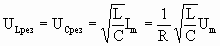При ω = ωрез имеем для амплитуд напряжений на индуктивности и емкости :
