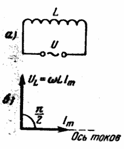 Рис.3.9.2. Переменный ток, текущий через индуктивность
