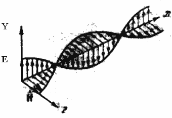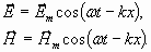 Как видно из рисунка, векторы электрического и магнитного полей образуют с направлением распространения правовинтовую систему. В фиксированной точке пространства эти векторы изменяются со временем по гармоническому закону. Поскольку волна должна распространяться в пространстве, векторы электрического и магнитного полей должны зависеть от координаты: