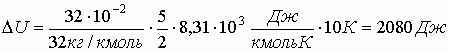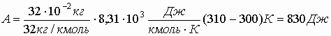 Пример 4. Кислород массой 320г. Нагревают при постоянном давлении от 300K до 310К. Определить количество теплоты, поглощенное газом, изменение внутренней энергии и работу расширения газа.