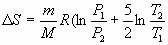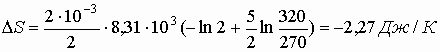 Пример 6. Как изменится энтропия 2г водорода, занимающего объем 40л при температуре 270К, если давление увеличить вдвое при постоянной температуре, а затем повысить температуру до 320К при постоянном объёме.