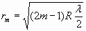 | Радиусы светлых и темных колец Ньютона в проходящем свете (или темных и светлых – в отраженном) | (m = 1, 2,…)