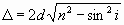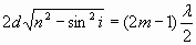 где d - толщина пленки, n – показатель преломления пленки, i – угол падения лучей. В выражении (1), учтено, что при отражении от среды с большим показателем преломления происходит потеря полуволны. Это наблюдается как на верхней, так и на нижней поверхности пленки.