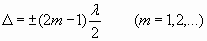 | Уравнение интерференционного максимума | Δ= ± m λ (m = 0, 1, 2…) |