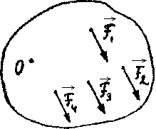 4. На чертеже изображено нормальное сечение твердого тела. Точка "О" проекция оси. Которая из действующих сил будет тангенциальной (касательной)?