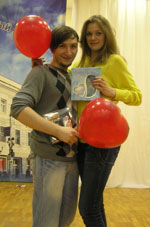 - Настоящее удовольствие получили от вопросов интеллектуального конкурса, - делится впечатлениями Дарья Ширшова, студентка ИАППП. - Атмосфера в этот вечер в зале была особенно домашней и доброй, поэтому все этапы этого интересного мероприятия мы преодолели с легкостью. Беспристрастное жюри сделало свой выбор. Под аплодисменты участники вышли на сцену. Ведущие объявили результаты: «Самая романтичная пара»… Сергей Иванов и Екатерина Блинова. - Мы не задумывались о победе, - говорит Екатерина. - Решили проявить себя как пара. Сергей Иванов - поет в ансамбле «Беловодье», я танцую в команде «Smile steps». Сегодня мы соединили наш талант в своей визитной карточке. Спасибо всем, кто поддерживал нас в зале, придумал для нас специальную кричалку. Было приятно. Несмотря на то, что победителем стала одна пара, подарки за участие достались всем. Гости же убедились: мир строится на любви! Галина Катеринич