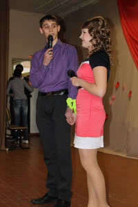 Конкурсанты подготовили «визитки» и самопрезентации. Они мужественно прошли все испытания: показали себя, объяснились без слов. Молодые люди, закрыв глаза, узнали своих прекрасных дам по прикосновению к носу, а девушки ответили на каверзные вопросы о своих спутниках.