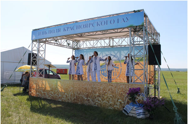 ФГБОУ ВО Красноярский государственный агарный университет проводит выставку достижений в области растениеводства «День поля»с 2015 года на опытных полях ООО «Учхоз «Миндерлинское» и УНПК «Борский» (п.Борск Сухобузимского района)КрасноярскогоГАУ.