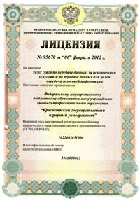 - Поддержка Web-сайта университета, его модернизация и развитие. Обеспечение доступа университетских пользователей к ресурсам глобальных сетей (Internet, RUNET, Krasnet и другие), а также к ресурсам корпоративной сети КрасГАУ.