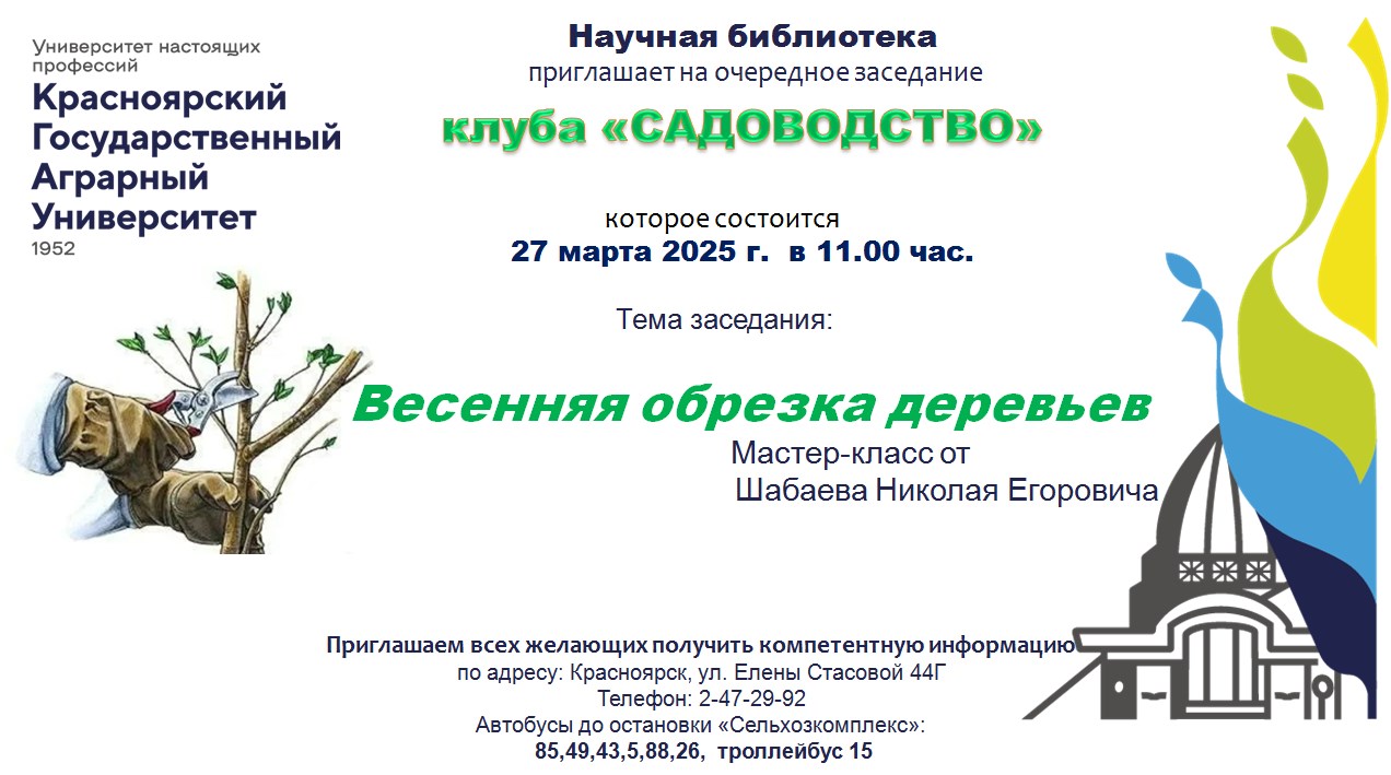 Ждём вас в Научной библиотеке Красноярского ГАУ по адресу: Красноярск, ул. Елены Стасовой, 44 «Г»