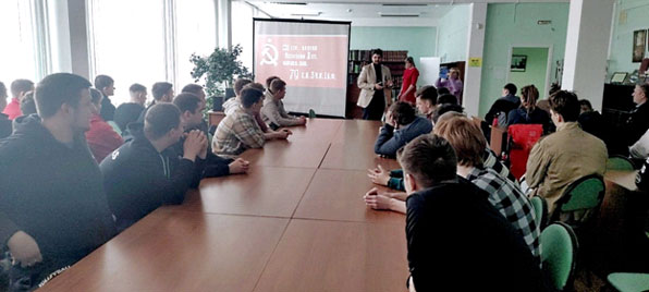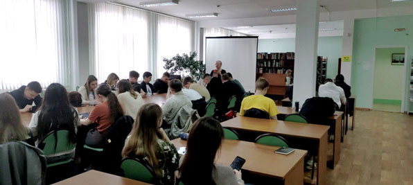 В течение декабря в читальном зале библиотеки проходят познавательные занятия для студентов по истории движения декабристов. Преподаватель истории Баранова Александра Сергеевна помогает студентам выяснить предпосылки восстания и цели его участников, причины и последствия поражения восстания. Главный библиограф Люкшина Татьяна Вячеславовна знакомит слушателей с книжным собранием, отражающим жизнь, деятельность и творчество декабристов.