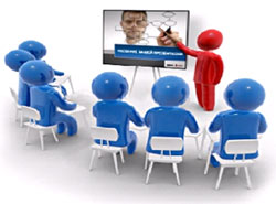 преподаватель показывает фильм во время очного занятия через проектор и проводится разбор ситуации со студентами.