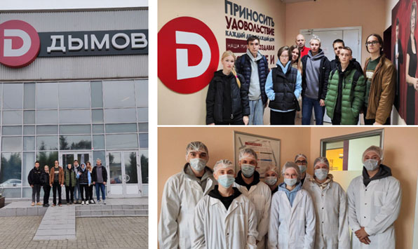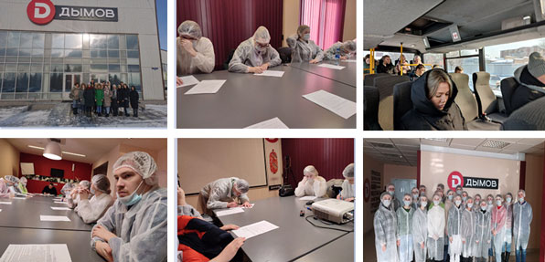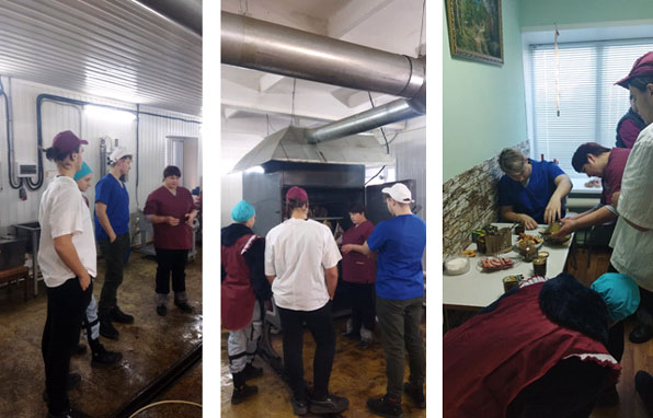 Студенты познакомились с деятельностью производственного цеха, изучили основы технологии обработки мяса, принципы работы оборудования в убойном, перерабатывающем цехах, а также продегустировали готовую продукцию (колбаски, вареники, пельмени и др.).