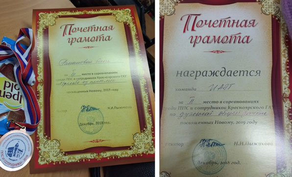 12 декабря 2018 года состоялись соревнования среди преподавателей университета, посвященные Новому, 2019 году. Команда нашего института в составе Романовой О.В., Коротченко И.С., Шубина Д.А. и Катцина О.А. приняли активное участие в соревнованиях и заняли Второе общекомандное место! Особенно наши преподаватели отличились в стрельбе из пистолета и метании дротиков. В дуэльной стрельбе одержал победу также представитель нашего института Калинин Алексей. Поздравляем и желаем дальнейших спортивных успехов!