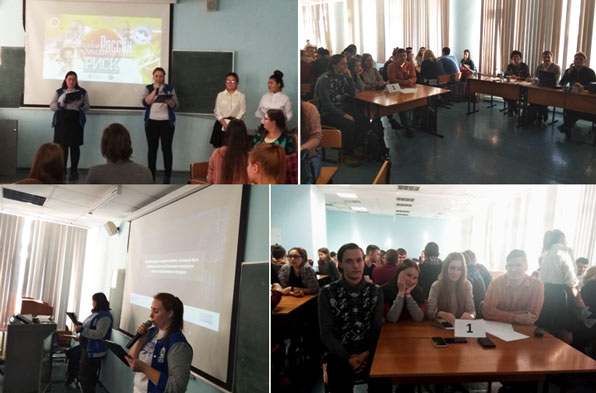7 ноября 2019 года в Красноярском ГАУ, в рамках реализации плана основных мероприятий Всероссийского общественного движения «Волонтеры Победы», прошла Всероссийская интеллектуальная игра «РИСК» (Разум, Интуиция, Скорость, Команда) на тему «Великие произведения России».