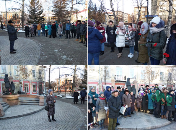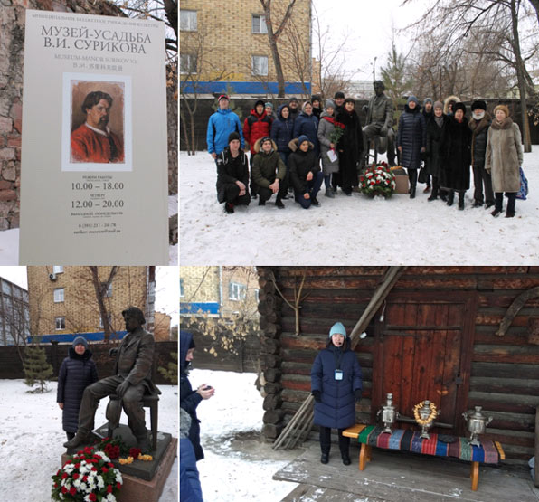 24 января студенты Красноярского ГАУ приняли участие в возложении цветов к памятнику Василия Ивановича Сурикова в Музее – усадьбе в честь 172-ой годовщины со дня его рождения. В.И. Суриков – первый красноярец, вписавший свое имя в творчество и вечность.