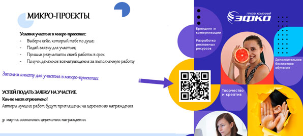 В течение марта 2021 года студенты Института Экономики и управления АПК приняли активное участие в проекте от ГК «ЭФКО» под названием «Микро-проекты». Данный проект был призван показать умения и навыки студентов в разных областях и был разработан для более близкого знакомства со студентами и их возможного дальнейшего трудоустройства в компании.