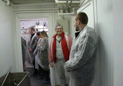 После была проведена подробная экскурсия по самому производству, в ходе которой были подробно описаны и показаны все производственные процессы на предприятии. Ребята побывали в цехе по приёмке и разморозке товаров, цехе по обработке рыбы, цехе по приготовлению рыбных продуктов, цехе по приготовлению вяленой и копченой рыбы. Студентам показали, как производится посол рыбы, как происходит процесс глубокой заморозки, а также процесс упаковки готовой продукции.