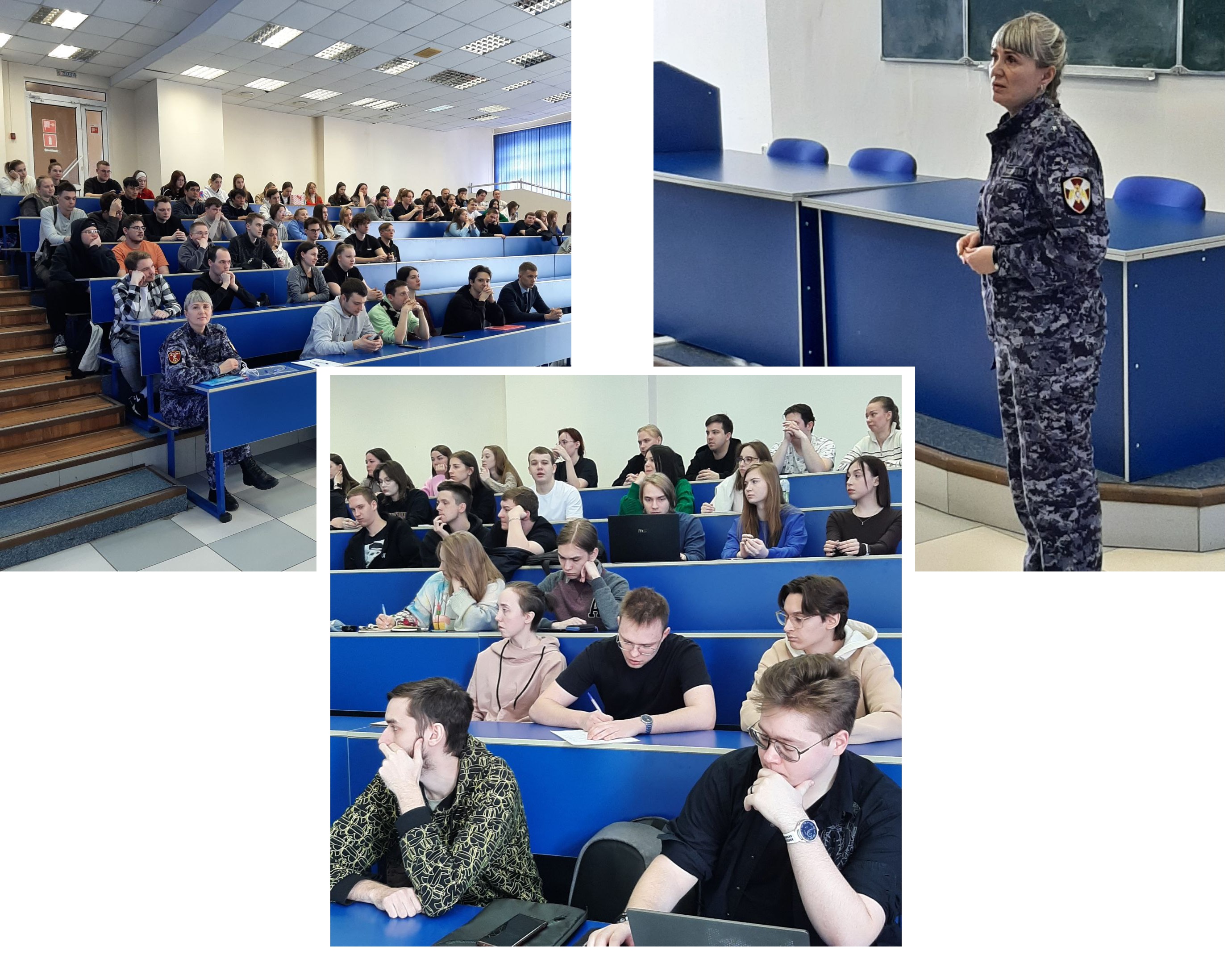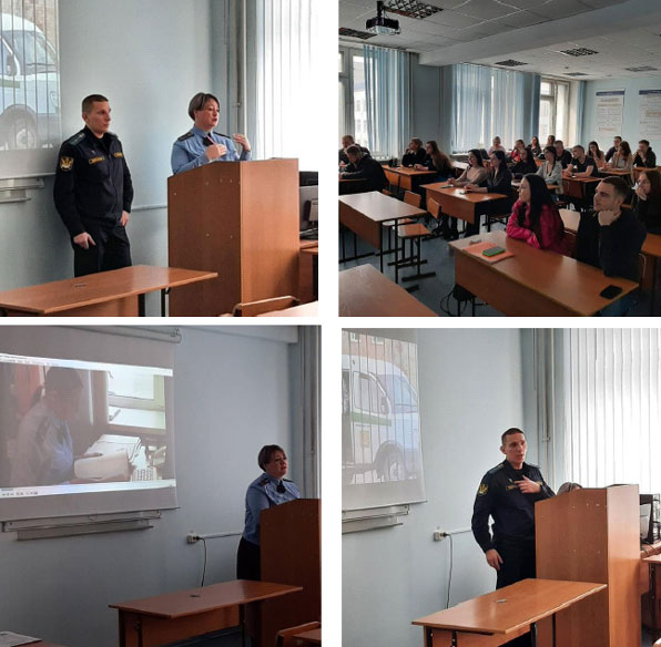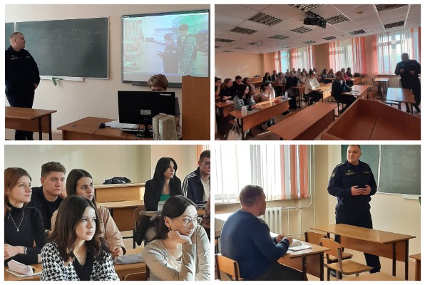 Была проведена беседа со студентами и показан видеоролик. В рамках беседы представители работодателя пытались выяснить у студентов, как они видят в дальнейшем своё будущее, своё трудоустройство, рассматривают ли службу в органах внутренних дел, чего ожидают от службы, какие трудности они видят перед собой и т.п. Была очень грамотно донесена информация о специфике и профилях работы органов внутренних дел, об условиях приема и прохождения службы, имеющихся льготах и социальных гарантиях в период ее прохождения.