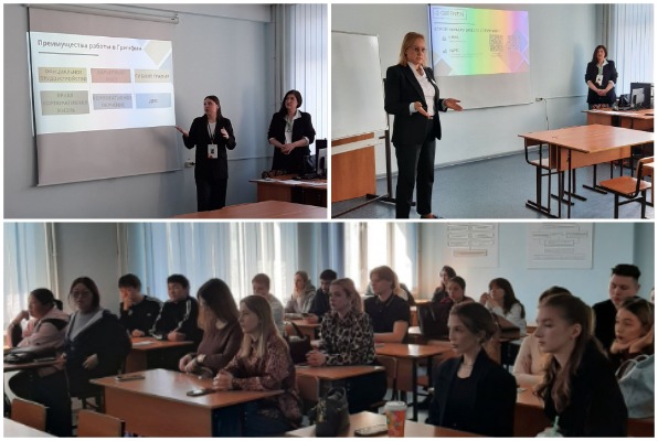 Сегодня состоялась встреча студентов 2, 3 и 4 курса направления подготовки 09.03.03 «Прикладная информатика» с представителями компании ООО «ГУГОЛ»: Радайкиной Натальей Викторовной и Поляковым Александром Константиновичем. Компания «ГУГОЛ» является крупнейшим оператором спутникового мониторинга транспорта на территории Восточной Сибири. Предприятие реализовывало проекты для крупнейших логистических компаний, сельхозпроизводителей, предприятий дорожного строительства, горно-, золотодобывающей промышленности и производителей потребительских товаров. Компания является официальным партнером и дистрибьютором ведущих российских производителей оборудования и программного обеспечения. В рамках встречи гости рассказали о компании, видах деятельности, принципах работы, внутренней культуре. Далее мероприятие было выстроено в виде диалога. Ребята задавали много интересующих их вопросов, например, можно ли устроиться на половину рабочего дня, чтобы совмещать работу с учебой, какие IT-инструменты предоставляет компания для работы, можно ли работать дистанционно, какие проекты были реализованы компанией, какова система поощрения и др. На все свои вопросы ребята получили развёрнутые ответы. Представители компании имеют опыт работы со студентами и заинтересованы в дальнейшем сотрудничестве.