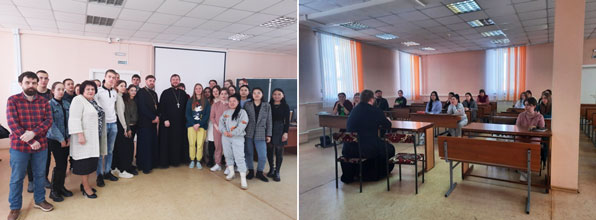 В целях духовно-нравственного воспитания обучающихся 17 декабря в нашем институте прошла лекция в рамках миссионерской акции «Второе миссионерское путешествие святителя Иннокентия Московского». Перед студентами 1 курса выступил настоятель храма святой мученицы Татианы иерей Антоний. Священник рассказал о жизни святителя Иннокентия Московского, о его трудах и подвиге в миссионерской деятельности по просвещению народов Сибири и Америки.