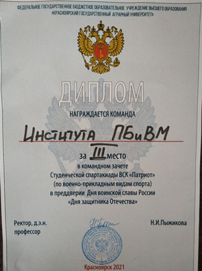 20 февраля 2020 года на территории «Татышев-парк» проводились соревнования по конькобежному спорту в рамках Краевой «Универсиады-2020» среди высших учебных заведений города Красноярска и Красноярского края. В состав команды Красноярского ГАУ входили студентки института прикладной биотехнологии и ветеринарной медицины Бельцова Алёна, Васильева Анастасия, занявшие призовые места.