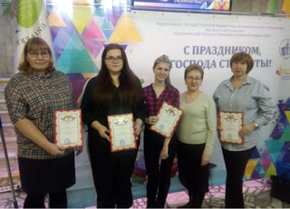 Гордость нашего института: (с лево на право) Тюрина Л.Е., Гордеева А., Беляева А., Бодрова С.В., Турицына Е.Г.