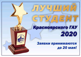 Объявляется приём заявок на конкурс «Лучший студент Красноярского ГАУ» по итогам 2019-2020 учебного года!