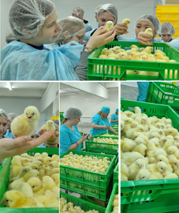 Они смогли увидеть весь технологический процесс от закладки яиц в инкубатор до упаковки полуфабрикатов.