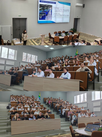 Студентам рассказали об истории компании, основном виде деятельности, перспективах развития агрохолдинга, познакомили ребят по видео со структурой агрохолдинга, рассказами специалистов о условиях работы, сообщили о вакансиях для выпускников, социальных гарантиях и преимуществах работы на крупном предприятии, что вызвало интерес у студентов и преподавателей института. Для ребят специальности «Ветеринария», направлениям подготовки «Зоотехния» и «Технология производства и переработки сельскохозяйственной продукции» от компании поступило приглашение не только о трудоустройстве, но и прохождение производственной практики на предприятии.