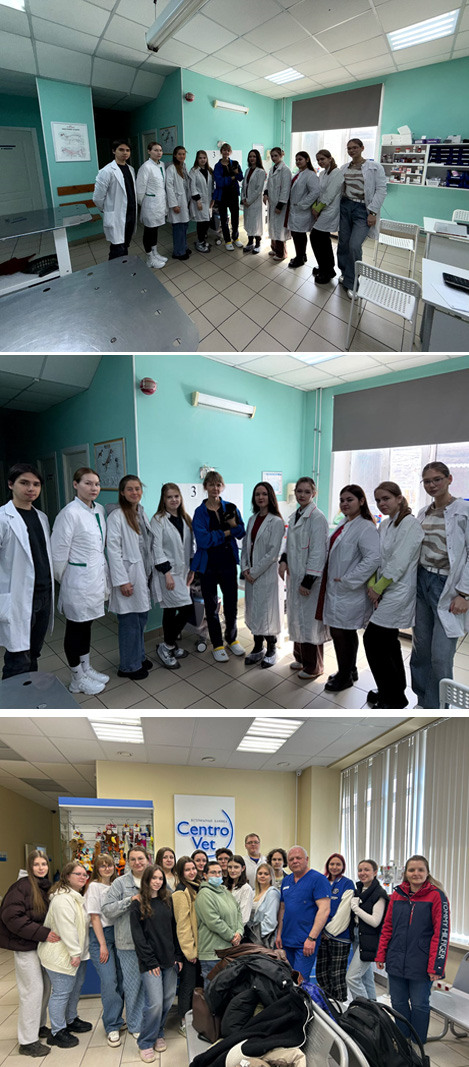 Николай Анатольевич рассказал студентам выпускникам группы В53-20о специальности «Ветеринария» о перспективах работы в ветеринарном центре, провел экскурсию, и мастер-класс по стоматологии. В рамках изучения дисциплины «Офтальмология» осмотрели пациента — кота, с заболеванием глаз, что позволило студентам разобрать клинический случай. Ответственными за мероприятие были доценты: Вахрушева Т.И, и Гавриленко И.В.