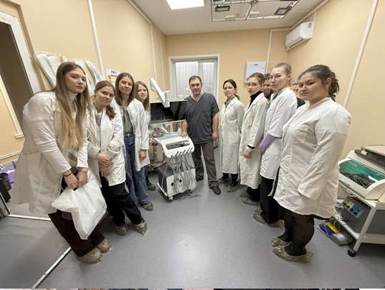 28.04.2025г. Были проведены выездные занятия у группы В-51-20z по дисциплине "Офтальмология" и встреча студентов с работодателем, на базе ветеринарной клиники Амикус. Студенты ознакомились с организацией и протоколом приёма животного при офтальмопатологиях, специальным оборудованием и новыми методиками лечения животных. Главный врач Мячин К.Н. Ознакомил студентов с информацией о возможностях трудоустройства в клинике, условиях труда, рабочим графиком и карьерного роста.