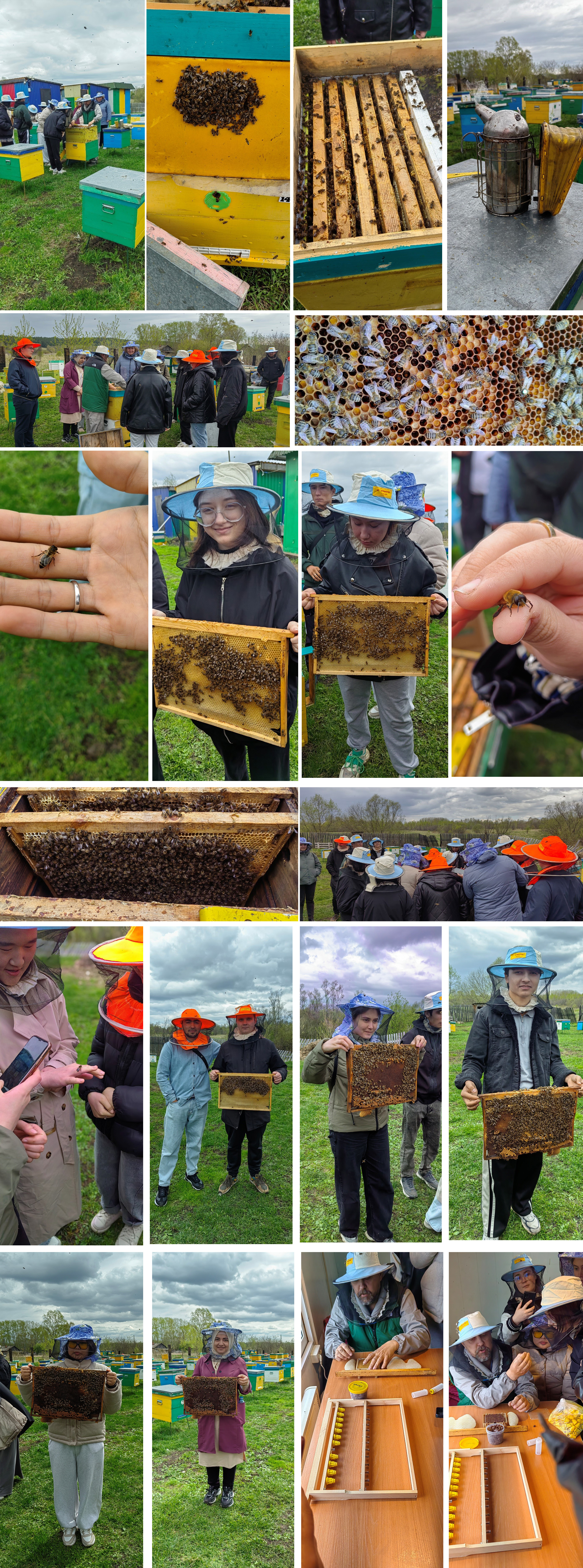 Валентин Викторович оказал тёплый приём: презентовал работу пасеки видео презентацией, познакомил студентов с технологией зимнего содержания пчелиных семей, показал технологию выведения и развития рабочих пчел, маток. С технологией весенней выставки пчёл и важность раннего облета пчел. Подробно рассказал и наглядно показал технологию содержания и разведения восковой моли, довёл до сведения, как и для чего, заполняется журнал пчеловода. Студенты под присмотром Валентина Викторовича научились формировать пчелопакет и распечатывать пчелиную семью.