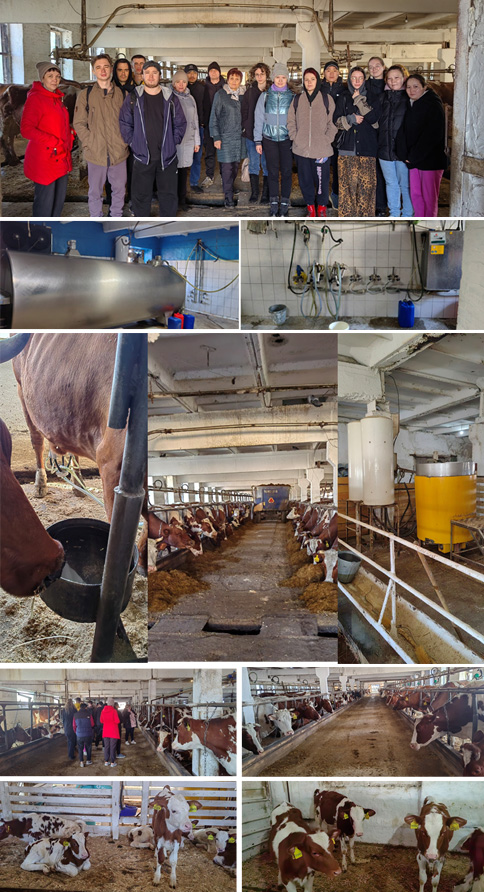 Ребятам в первую очередь показали оборудование для дойки. Из труб в колбу течет молоко, насосом же, из колбы молоко выкачивается через систему фильтров и попадает в танк-резервуар для хранения молока. Также студентам детально рассказали о деятельности компании и преимуществе работы в агрохолдинге, а так же познакомили с условиями содержания и кормлением коров и молодняка. Агрохолдинг является единственным в районе сельскохозяйственным предприятием, прочно и надежно стоящим на «своих ногах» с точки зрения стабильности в показателях, по которым оценивается работа аналогичных предприятий. Сегодня ведущей отраслью производства является молочное животноводство, которое представлено молочно-мясным скотоводством.