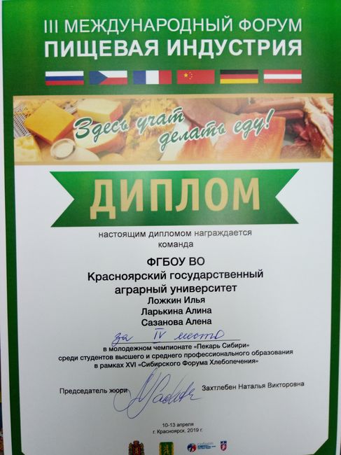 VI Сибирский форум хлебопечения. Сибирский молодежный чемпионат пекарей среди учебных заведений среднего и высшего профессионального образования
