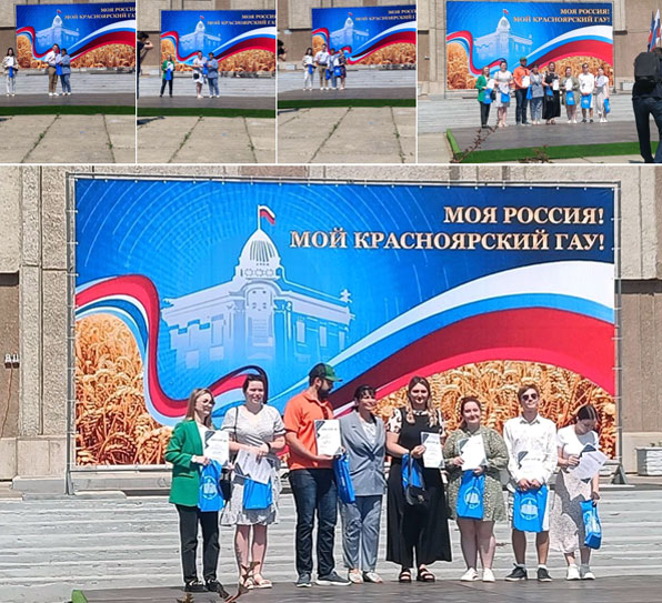 09.06.2023 г. на площади учебного корпуса ИПП, в рамках торжественных событий к празднованию Дню России - 12 июня «Моя Россия. Мой Красноярский ГАУ», проходила церемония награждения победителей конкурса «Лучший студент 2022-2023 учебного года», «Лучший первокурсник института», «Лучший староста академической группы. Так же на празднике проходили и другие мероприятия: флэш-моб «Встанем», мастер-класс «Русская матрешка», спортивный матч «Россия чемпионка!», открытие трудового семестра Студенческих отрядов.