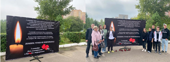 У стелы «Помним! Гордимся! Чтим!» в студенческом кампусе собрались студенты, преподаватели почтить минутой молчания тех, кто погиб в этот трагический день.